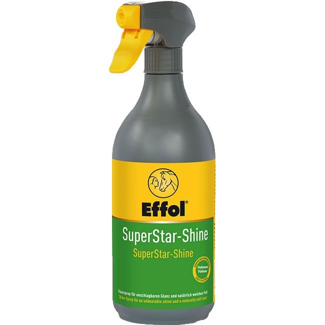 EFFOL SuperStar-Shine - lesk na srst, hřívu a ocas 750ml je vynikající prostředek dodávající srsti a žíním nádherný lesk a objem. Rozčesávání a čištění bude jednodušší a tento efekt vydrží až několik dní. Obsahuje silikonové emulze, pečuje o žíně a je šetrný k pokožce.