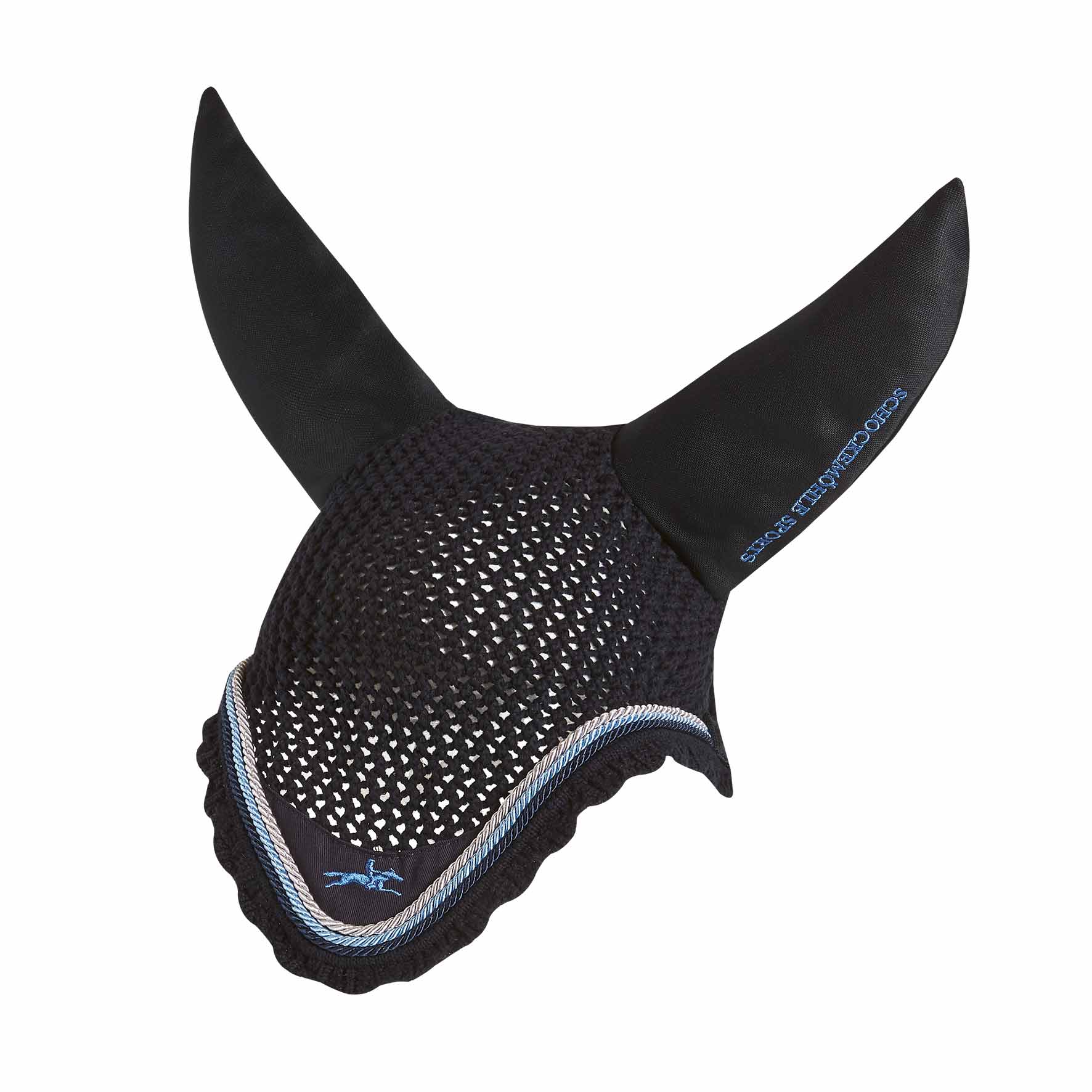 Ozdobeno třemi tenkými provazy a výšivkou na uchu.