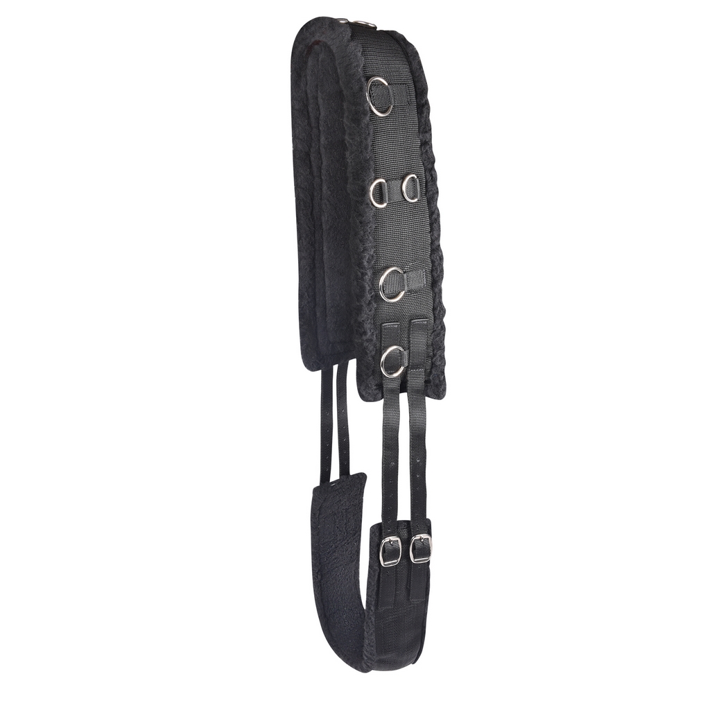 Lonžovací obřišník vyrobený z pevného polypropylenu s umělým beránkem. Obsahuje 12 kroužků pro individuální upevnění.
