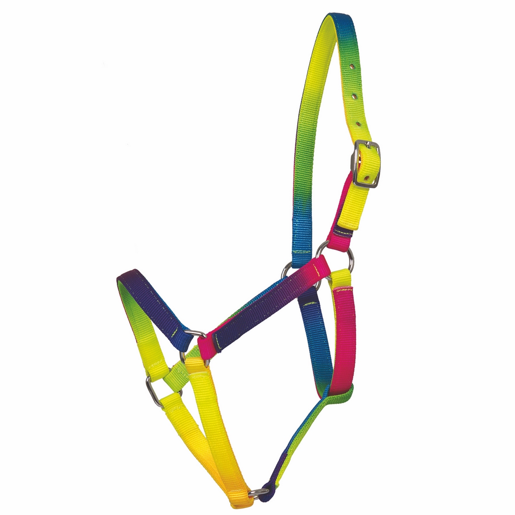 Ohlávka v duhových barvách s nastavitelným nátylníkem.