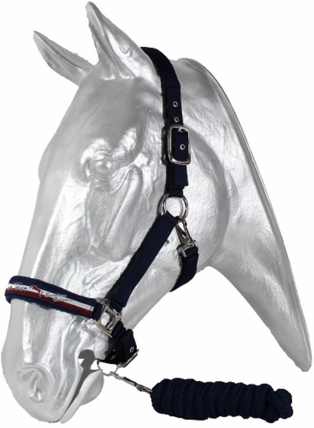 Luxusní ohlávka s vodítkem. Vyrobena ze silného polyesterového popruhu s měkkými hranami. Nánosník zdoben vytkanou stuhou. Kvalitní zesílené kování. Nastavitelný nánosník, oboustranně nastavitelný nátylník, podhrdelník s praktickou karabinou. Nátylník i nánosník podložen měkkým fleecem .Pletené vodítko z polyesterových vláken je měkké a příjemné do ruky.