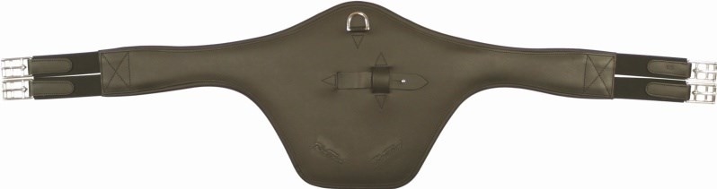 Klasický skokový kožený podbřišník s krytem hrudníku. Velmi dobrá pomůcka pro ochranu koně před zraněním vlastními podkovami při skokové práci. S nerezovým kováním.