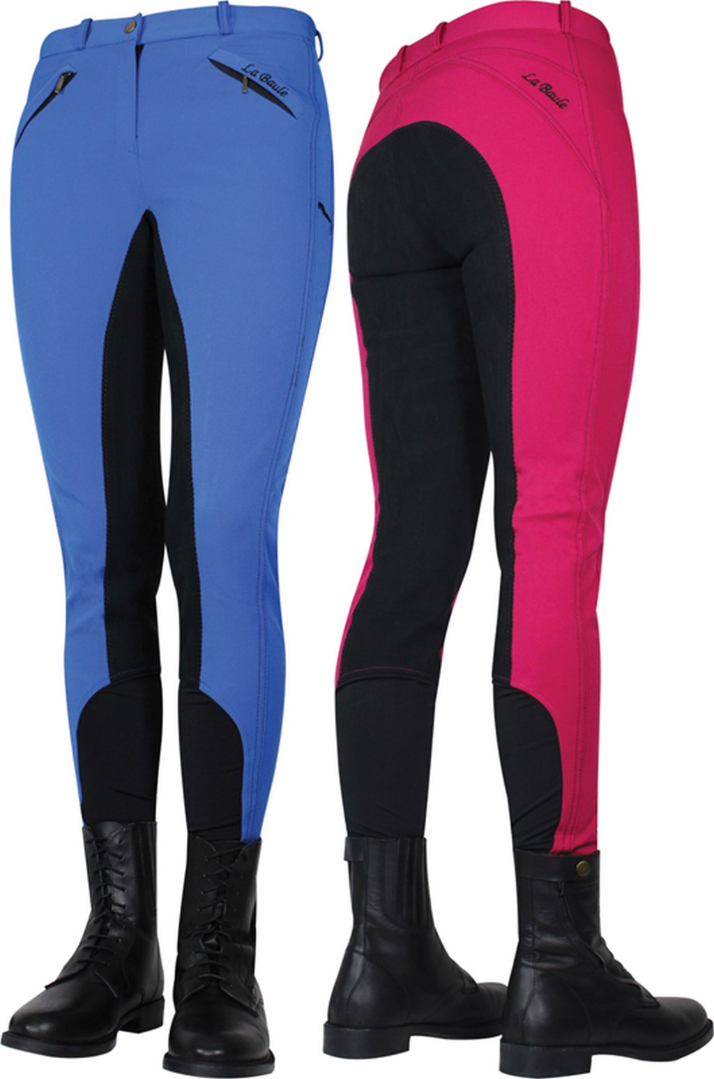 Dámské rajtky La Baule, sed z umělé kůže Clarino, přední šikmé kapsy na zipy. Kontrastní prošití. Elastické úplety na lýtkách. Tkaný materiál polyviskóza/lycra. celý popis