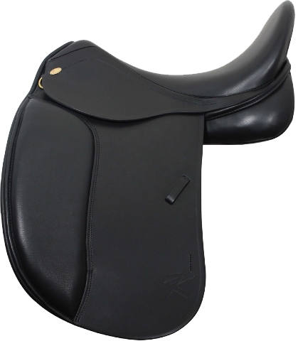 Drezurní sedlo na hluboké kostře. Vysoká opěrka na suchý zip. Krátký sedlový francouzký polštář sedlo předurčuje na koně s kulatým, rovným, krátkým nebo přestavěným hřbetem.