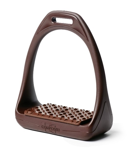 Třmeny v černé a hnědé barvě. Extrémně lehké třmeny vyrobeny z vysoce kvalitního plastu jsou odolné vůči vzniku trhlin a proti oděru i při nízkých teplotách. Integrovaná pohyblivá vložka umístěna na tlumení nárazů snižuje tlak na kolena a klouby. Protiskluzová široká plocha je vyztužená skelnými vlákny.