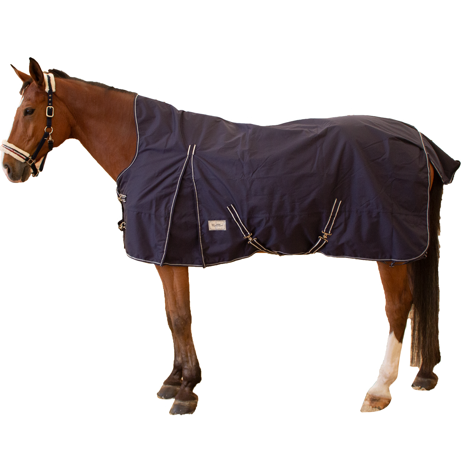 Nepromokavá deka, fleecová podšívka, rozparek na plecích, křížové zapínání pod břichem, materiál Ripstop 600 DNR.
