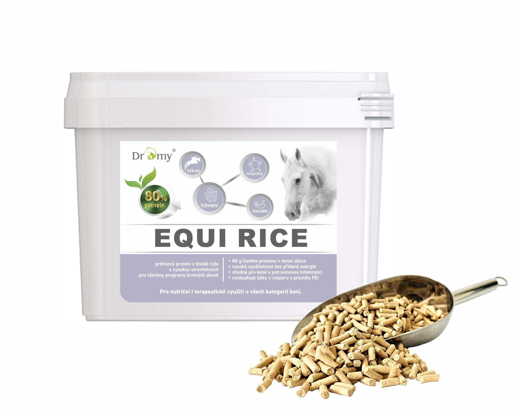 EquiRice je vysoce stravitelný rýžový protein prémiové kvality, který poskytuje jedinečnou skladbu funkčních živin. Je bezpečnou hypoalergenní volbou u koní s potravinovou intolerancí, neboli hypersenzitivitou, na obiloviny, vojtěšku, sóju a jiné agens. Je velmi vhodný pro koně s výskytem gastroduodenálních ulcerací (EGUS), genetickým onemocněním PSSM, endokrinními metabolickými poruchami (EMS) - IR, PPID, spojenými s obezitou, zvýšenou regionální adipozitou, dysregulací inzulínu a hyperinzulinémií.