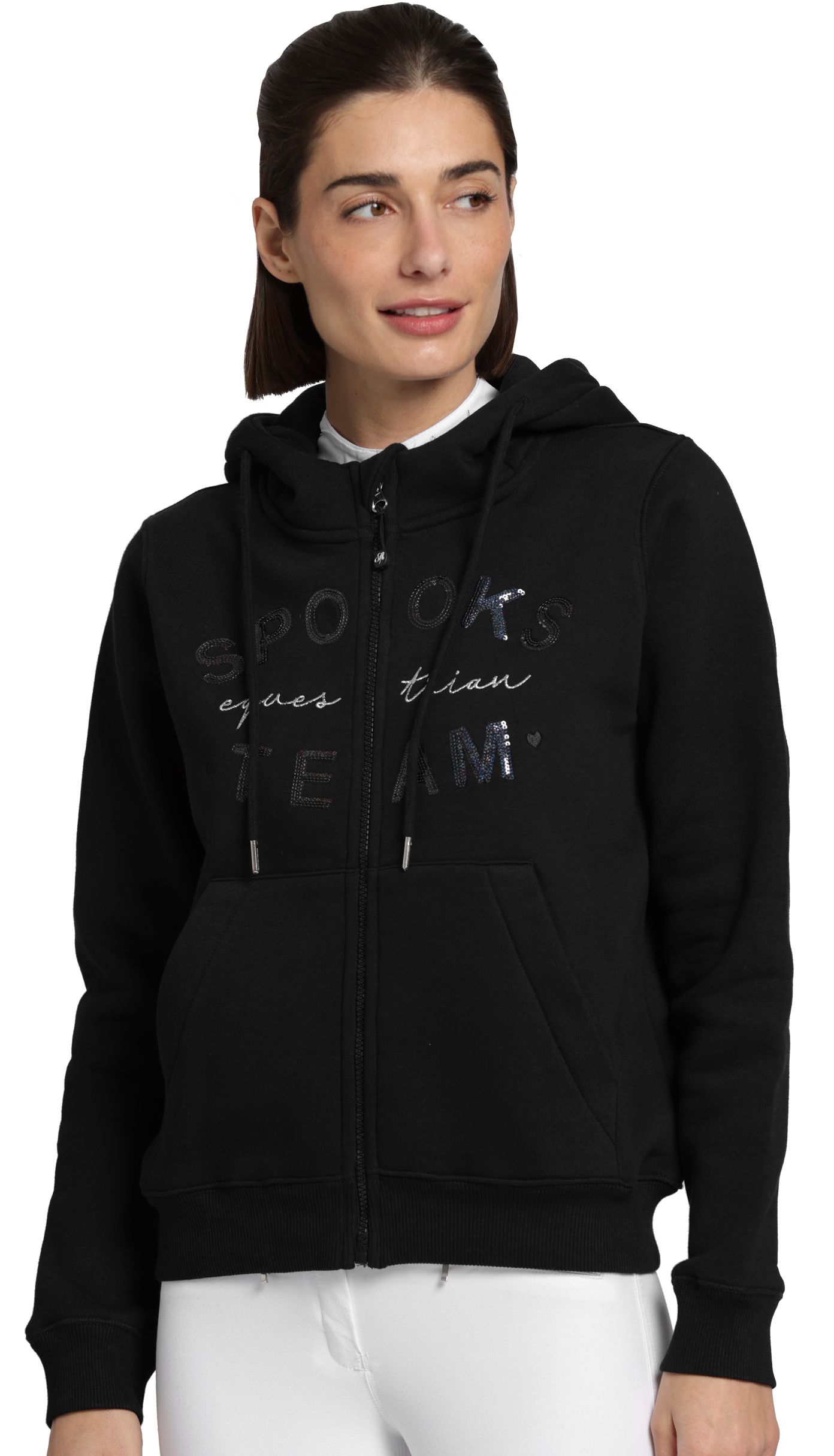 - Nápis SPOOKS z třpytivých flitrů a stříbrná výšivka na přední straně