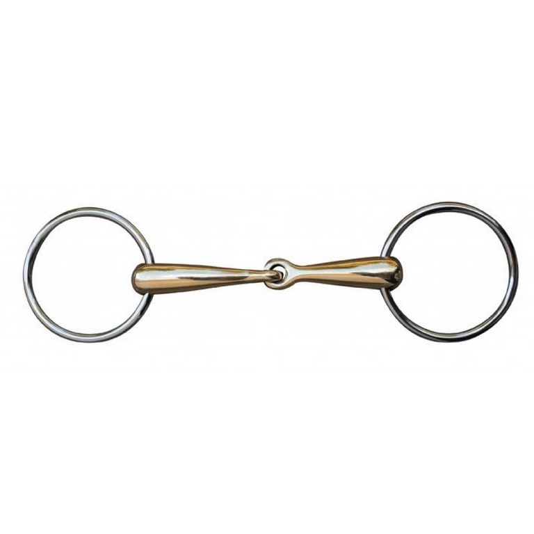 Měděné udidlo, podporující slinění a přežvykování. Díky tomu kůň lépe spolupracuje s udidlem. Kruhy jsou vyrobeny z nerez oceli.